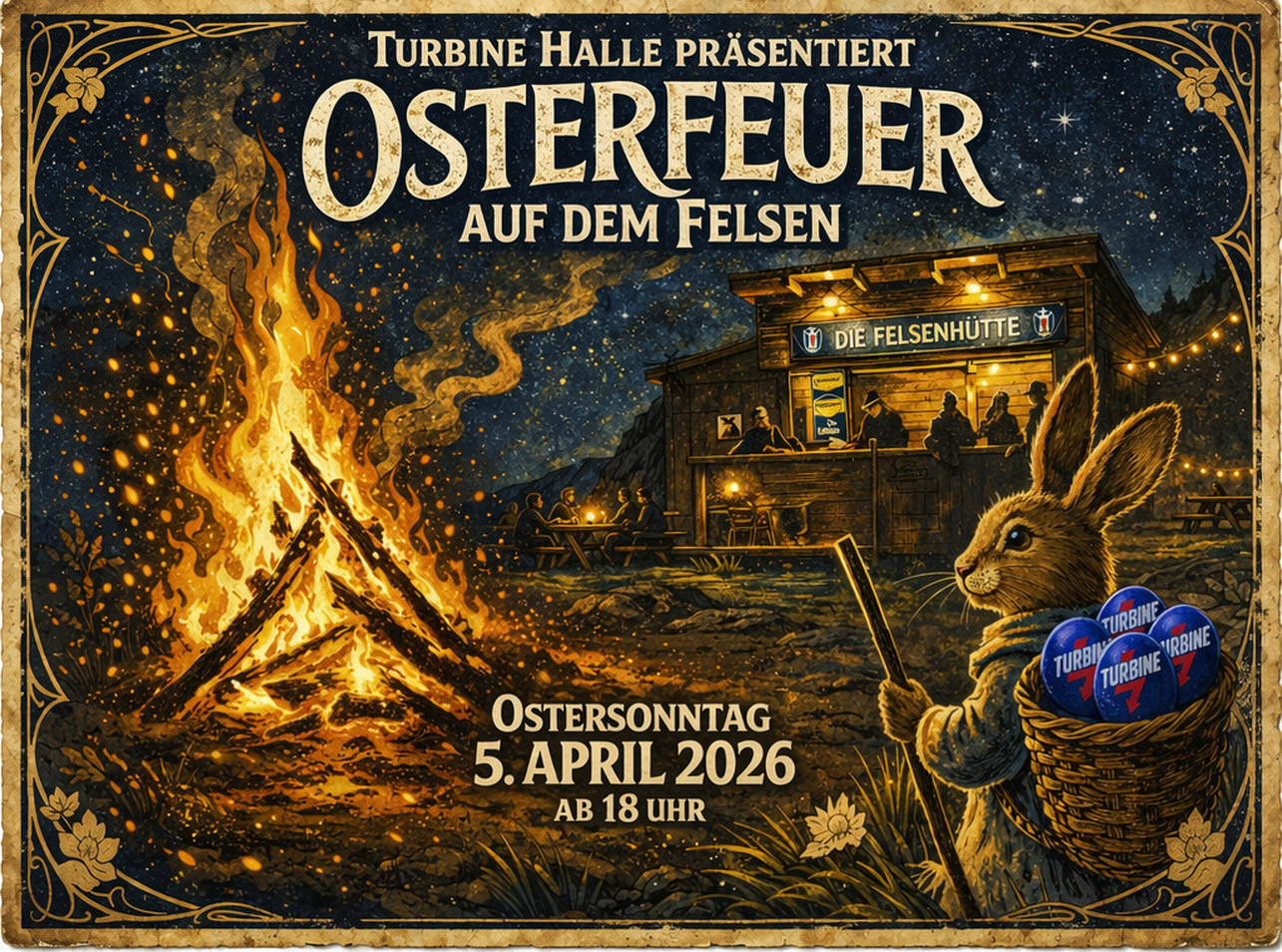 Bevor in der kommenden Woche alle in die Osterferien verschwinden, heißt es "Save the date". Traditionell werden wir am Ostersonntag, den 5.April ab 18 Uhr das Osterfeuer entzünden und laden euch ganz herzlich an die Felsenhütte auf den Felsen ein. Neben dem wahrscheinlich wärmsten Osterfeuer des Giebichensteinviertels, das zuvor fleißige Helfer aufbauen werden, wird es Würstchen vom Grill und Knüppelkuchen geben.